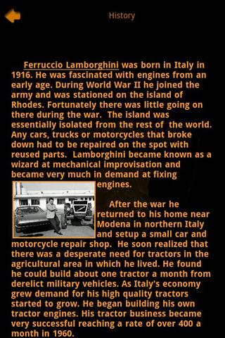 This app includes all models made by Lamborghini throughout the years from the Lamborghini 3500 GTZ to the Aventador. Each model has its own photo and gallery, video gallery and informations.