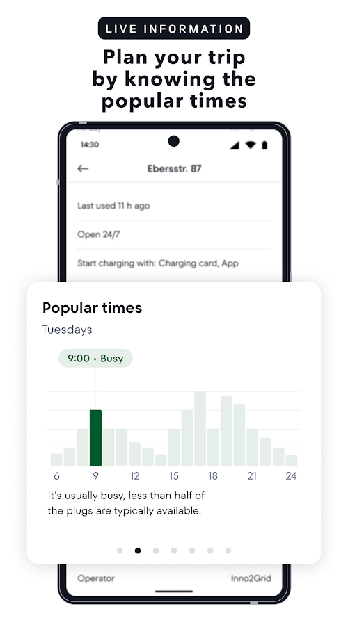 - Easy to read visual information on the status of charging points; you can immediately see if a charging station is functioning, has available chargers or is offline