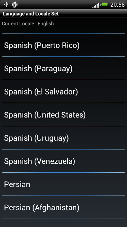 Language and Locale Set tool supports Android phone language settings, if your phone does not come with so many languages, you can use this tool to modify, but can be set only area local language support for languages such as games can use this tool set.