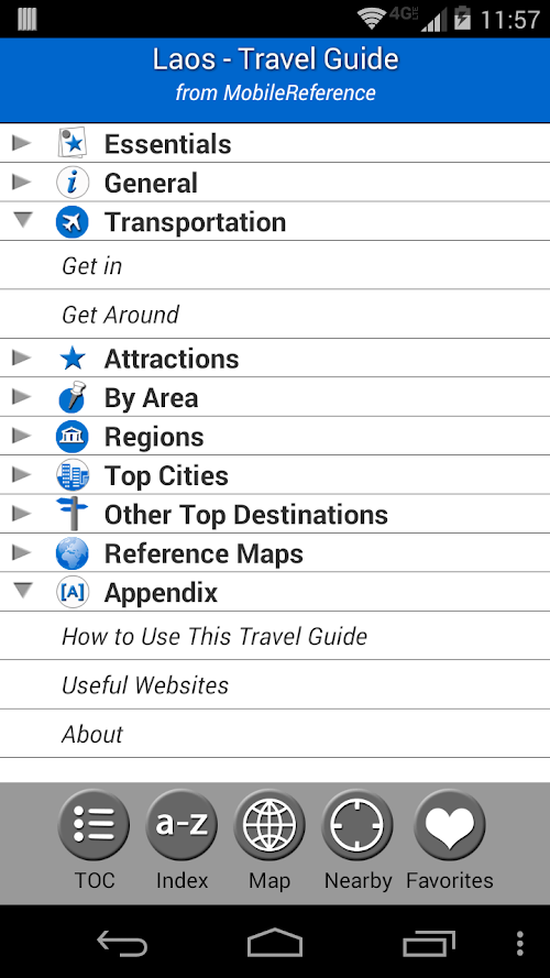 MobileReference Travel Guides provide detailed, practical information about attractions, landmarks, transportation, cultural venues, dining, lodging, history and much more. They are indexed alphabetically and by category, making it easier to access individual articles. Attractions can be viewed on an offline GPS map along with your current location so that you can easily find attractions near you as you explore the city.