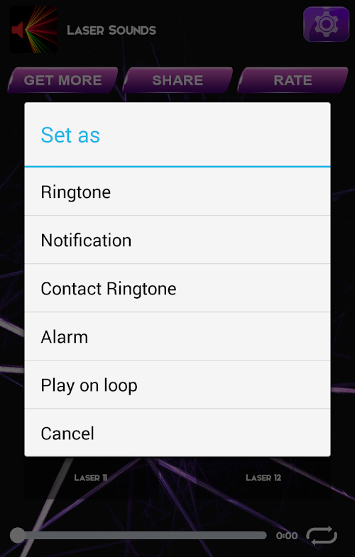 Laser Sounds offers you the best ringtones, top message sound notifications and cool new alarm tones. Show everyone around you that you are a true sci-fi fan! Download Laser Sounds now and turn your phone into intergalactic space weapon of fun!