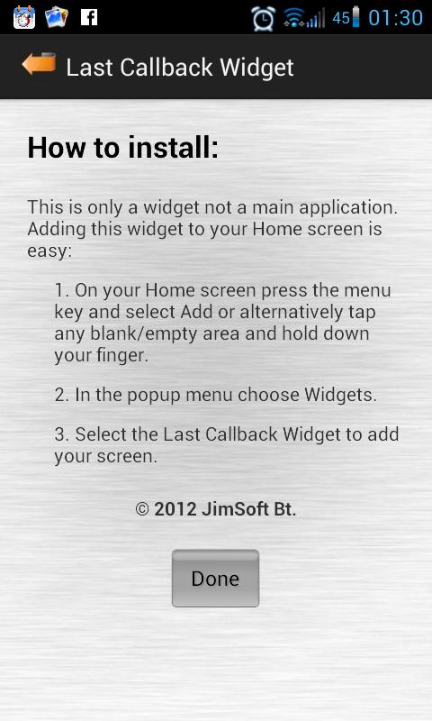 If you are looking to download other versions of Last Callback Widget Android App, We have 2 versions in our database. Please select one of them below to download.