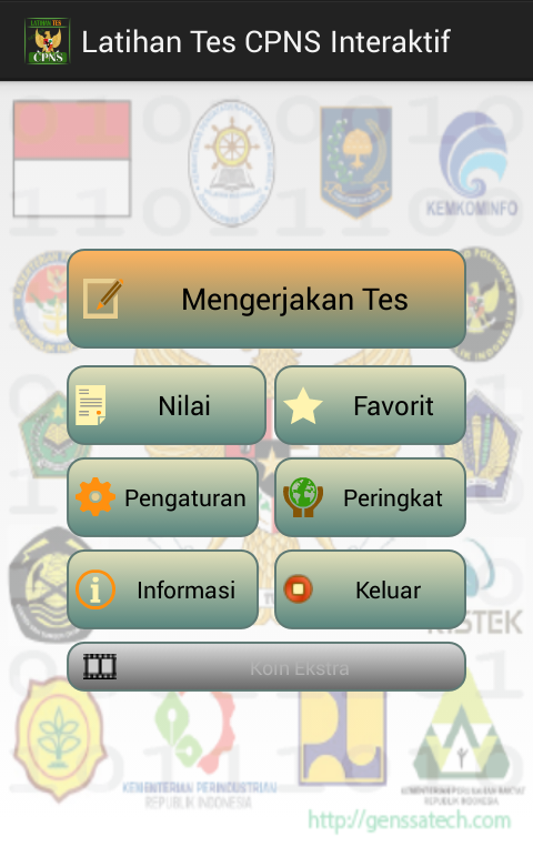 Kami menantikan koreksi, saran, masukan untuk perbaikan aplikasi ini via email ke alamat info[at]genssatech.com. Exercise admission exam questions candidates for Civil Servants, interactive and fun.