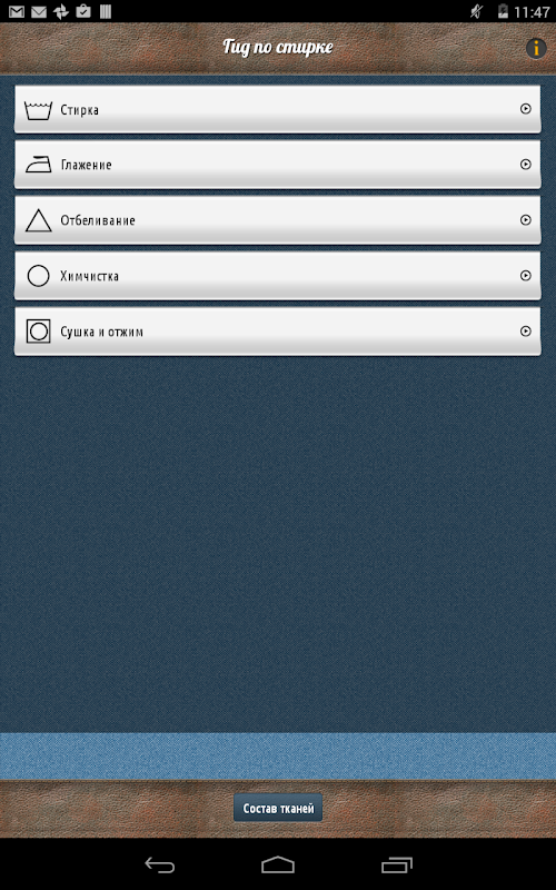 Mysterious symbols on the textile care labels are no longer a problem! Laundry guide is your guide to easy clothes care! This application will help you to save money and time and your things will always look like new ones.