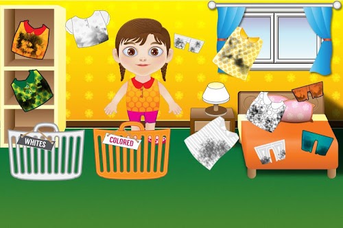 This time we will leave a very fun game where you have to do is help your mother after a long day at work to sort and arrange your clothes you left dirty all over your room. Follow the different steps you have to do to clean up and put the clothes in different baskets, one is colored and the other white, then you will have to wash clothes in the machine and place the soap to get you started. After completing the work will have to dry clothes in different strings in the garden, you will not have to iron anything because you'll always be smooth and clean. Such games cleaning is great for those who want to start doing chores and these girls games will help you get started.
