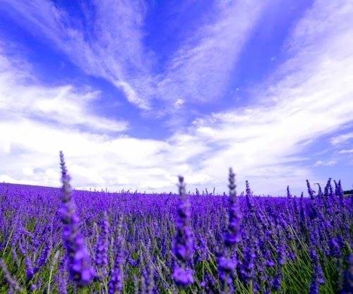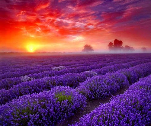 Lavender HD live wallpapers, beautiful sky and floating flowers. Lavender Garden desktop wallpapers, beautiful lavender scenery! Sunrise under the lavender background!