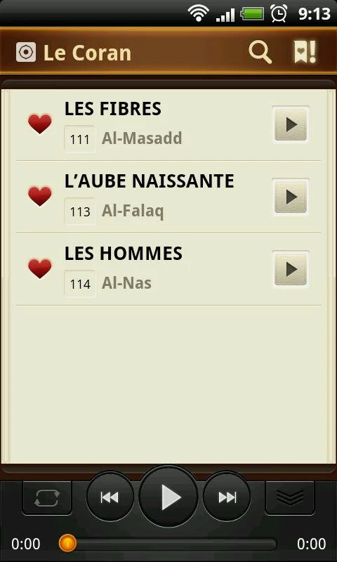 • Écoutez sourates soit un par un dans une boucle ou par une sourate dans une boucle ou à la demande