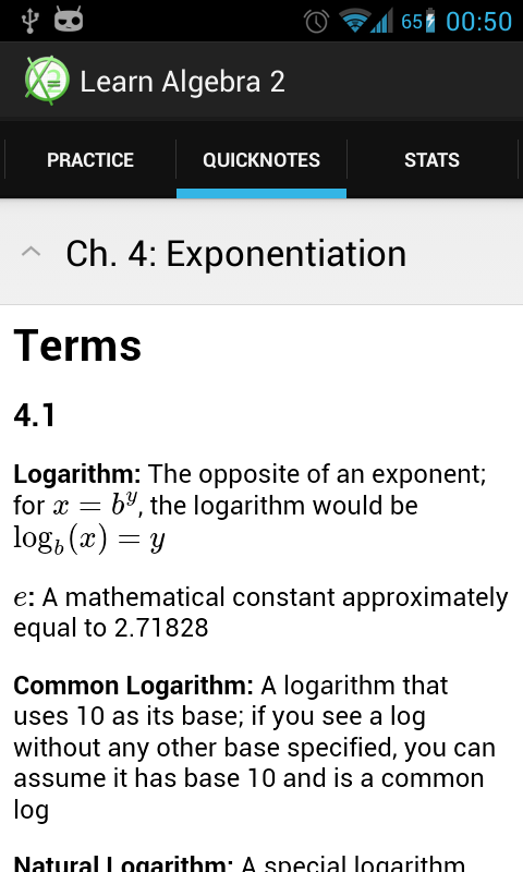 The critically acclaimed sequel to the popular Learn Algebra app! Now you can learn the basic concepts of Algebra 2 with the same intuitive interface and effective lesson-problem-quicknotes format of the first app all for FREE. This application is perfect for those who have: