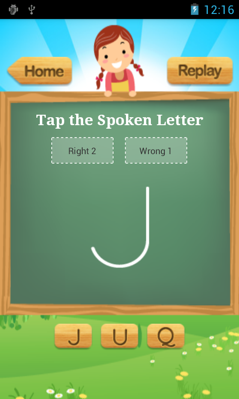-- A Game (for kids to listen to the alphabets and select the correct alphabets).