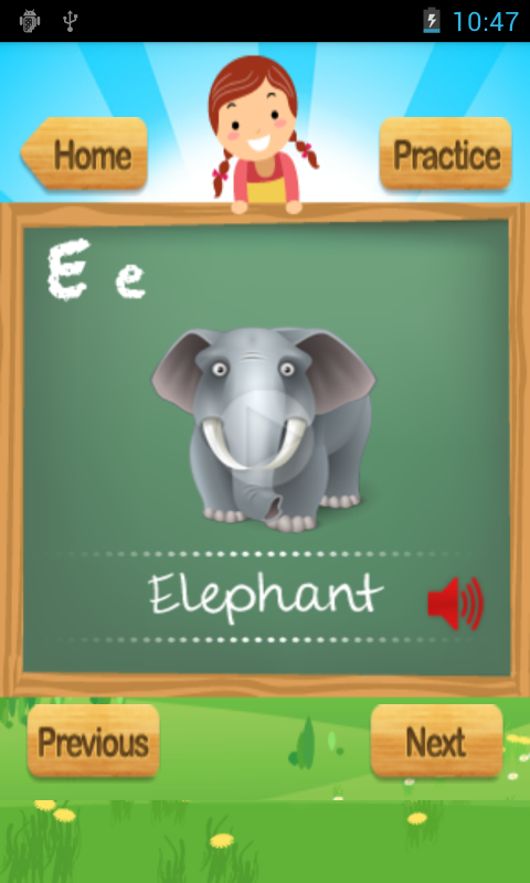 This interactive application uses sounds and pictures to memorize the alphabets, sounds help in learning pronouncing of letters where as pictures help you to recognition of letters. Learn your ABC Alphabets today.
