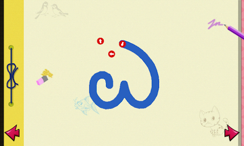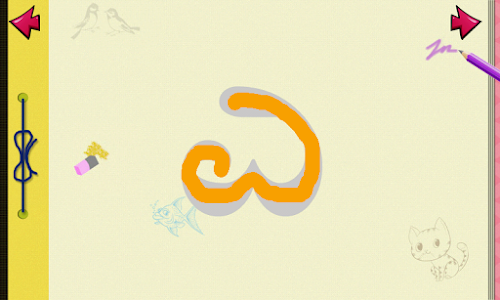 Step 3: Workbook- Practice writing each alphabet and its associated object. On correct write, corresponding object image is shown. On wrong, hint is shown so that kid can draw it correctly next time.