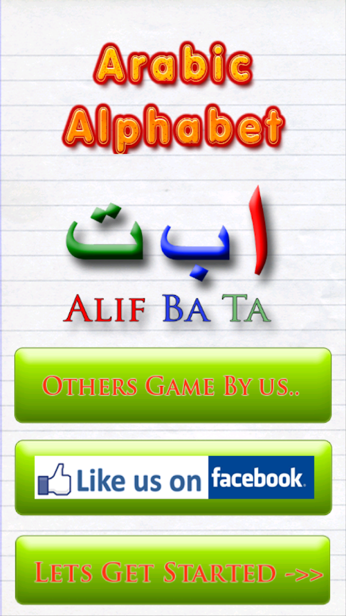 Free Application " Learn Arabic Alphabet or learn Alif Ba Ta" in English is easy way for your kids, toddler to know and learn the arabic alphabet. It have audio and roman words for help your kids, toddler to know exactly and pronounce exactly as arabic alphabet alif ba ta. No age limit to use this apps and it help the kindergarten teacher to teach their pupils.