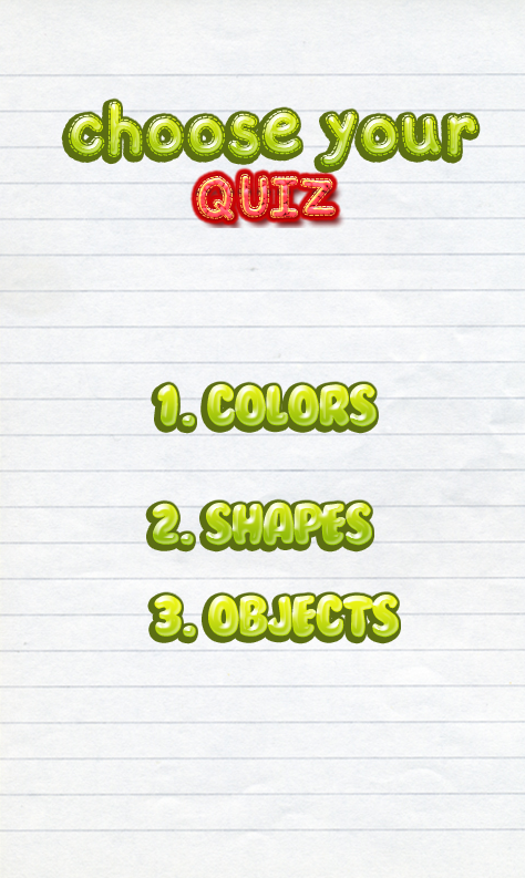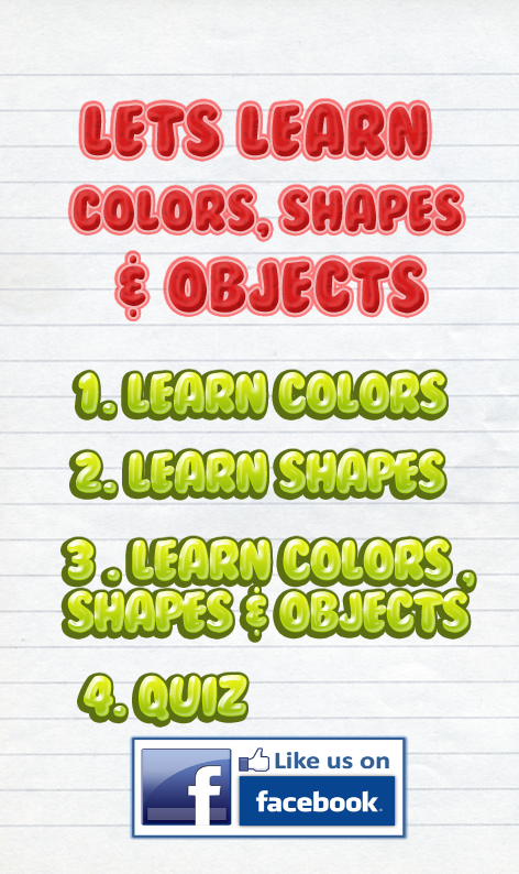 After installing the key new features will be unlocked: Quiz for colors, shapes & objects.