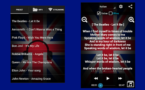 The app is created to learn English by using music.