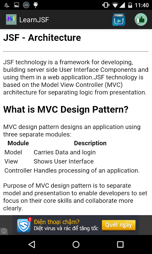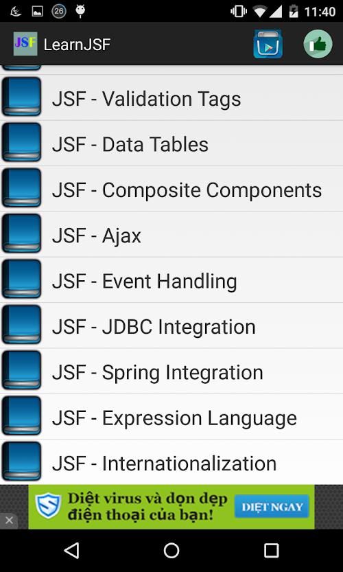 This version of Learn JSF Android App comes with one universal variant which will work on all the Android devices.