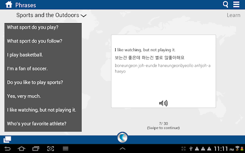 2) Phrasebook: Use our interactive phrasebook to read phrases for the below topics. You can hear its pronunciation at any time by tapping on the card!
