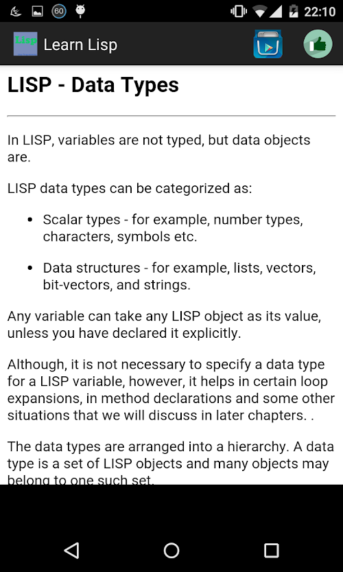 Welcome to the world of Lisp. This app will help you know about list from basic to advanced.