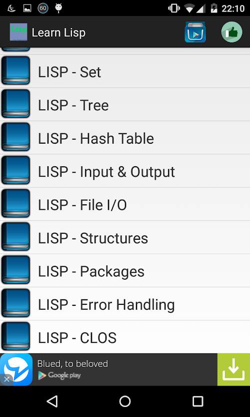If you are looking to download other versions of Learn lisp Android App, We have 2 versions in our database. Please select one of them below to download.