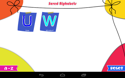 Step 3: Workbook - Practice writing each alphabet and its associated object. On correct write, corresponding object image is shown. On wrong, hint is shown so that kid can draw it correctly next time.
