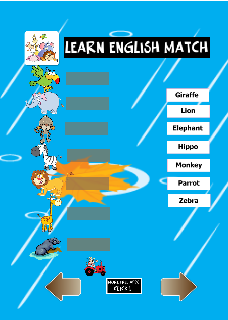 Learn speak english language. Easily learned by themselves through the mobile phone or tablet. The screen displays the words and pictures of various animals or pets to match the words to the english vocabulary matches. Just drag and drop the words in the box is simple for kids to play both boy and girl. Fighting words are simple, beautiful sound effect. If it is correct, it shall be read in English. Promote the development of speaking, listening, reading English. Vocabulary learning a foreign language or learn English on a very different animal to recognize sentences spoken wizard easily. The term is usually used in everyday life can learn about joyfully invite you to remember the words to say about the animals as well. Improve spoken English has improved in the future. In addition to the English and English gamma We need to know the words to build sentences. Called correctly What's the word pair for both children kindergarten elementary school children's university. Free English across the screen. Development to speak fluent English with the development of listening to understand. Can try to speak as well in learning english match. for Children, students, whether toddlers, preschool, kindergarten to grade. 1st. 2nd. 3rd. 4th in learning English. English Training English conversation or spoken english, the better for the future. Need basic English vocabulary as possible. In order to establish communication with a foreign language. English as a The practice of English grammar, vocabulary, exam or test speak english, together with a number of English language. You can speak english sentences everyday or dialy.