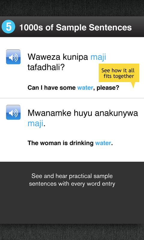 - Swahili Top 200 Words: A special list of words specific to daily life in Kenya. You’ll learn handy cultural insights with every entry transforming Word Power into a mini travel and cultural handbook (3G or WiFi required to access Wikipedia links within the app)