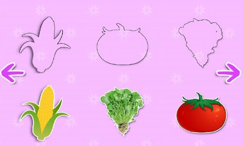 26 fruit images, 26 vegetable images and interesting way of pattern matching will give your kid to have best fun with this learning app.
