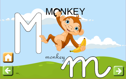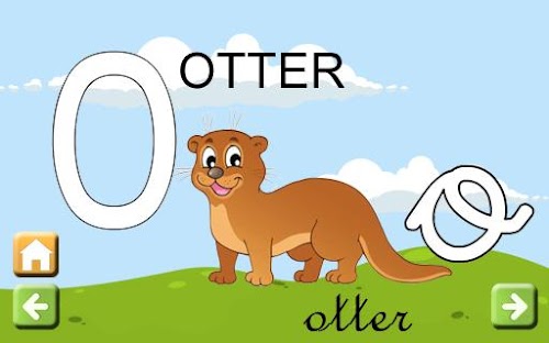 In this mode, the child will learn an animal who name begins with the letter selected. The index card of the letter shows an image of the animal, and its name in uppercase and in lowercase, and also the child will hear a sound with the pronunciation of the animal.