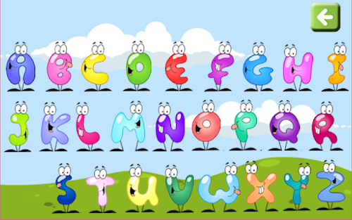 In this mode the child chooses what letter wants to watch. If for example, the child chooses the letter "A", the game reproduces a sound "A" when the child tap on it, and then the index card appears. In the index card you can find the letter "A" in the middle of the screen, in uppercase and in lowercase. So the child can learn the alphabet playing with the game, learning the letters, and learning in a graphical way.