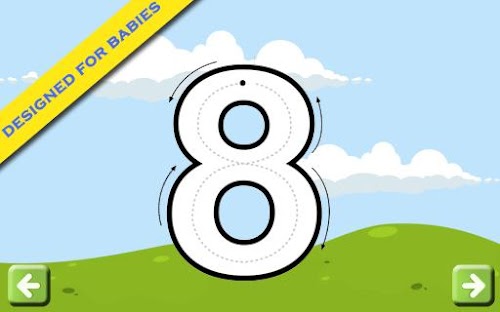 In this mode, the child will lear to write each number. Each index card has a draw the number the child has to write (draw). A little arrows indicate the child the way of the drawing. So the child will learn to write the number drawing it in the screen with the finger. In this mode it is important the help of the parents, encouraging the children to complete the number.