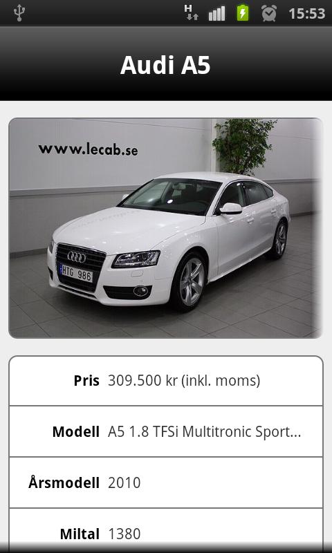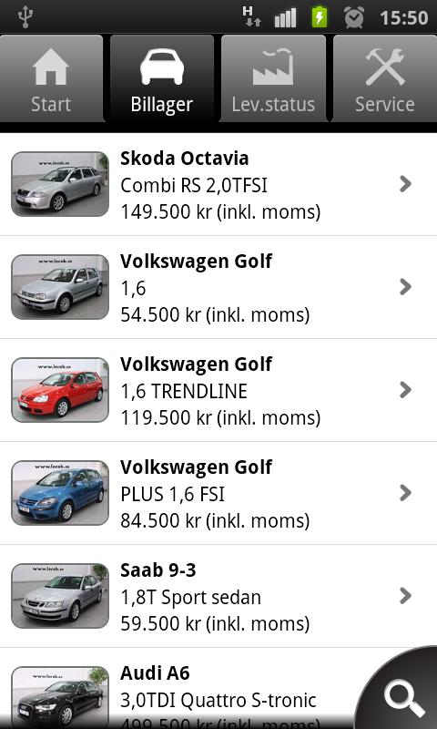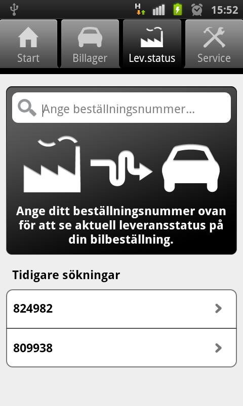 Applikationen är optimerad för enheter med upplösningen 480x800 pixlar. Applikationen är INTE anpassad för surfplattor.With Lecabs app, you can quickly and easily see which new and used cars in stock, book services and receive our news and promotions. Additionally, if you order a new car with us at Lecab app helps you track the vehicle through the entire production process - from order to delivery.