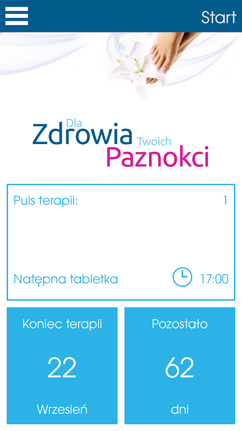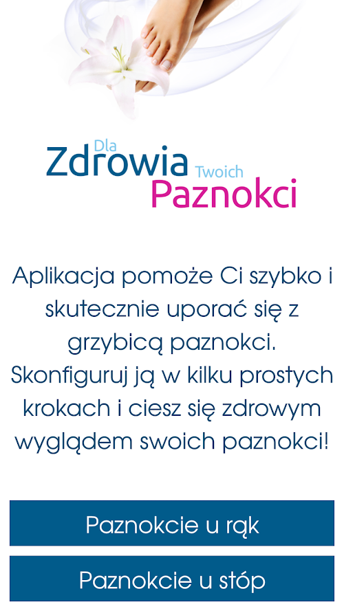 Głównym zadaniem aplikacji „Lecz paznokcie” jest przypomnienie użytkownikowi o systematycznym przyjmowaniu terapii przeciwgrzybicznej niezbędnej do zlikwidowania choroby.