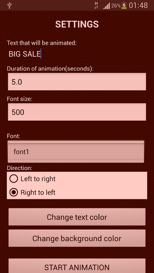 Change left to right or right to left direction of text animation.