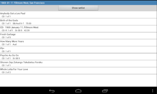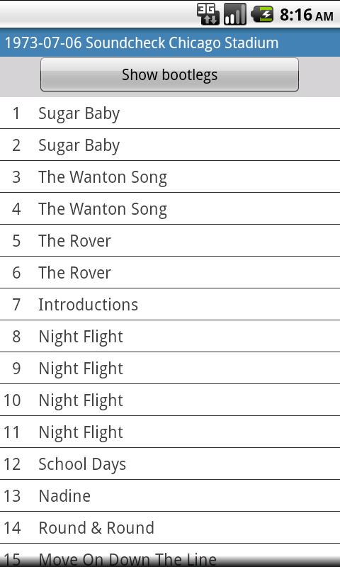 Please be clear - this is a reference source about live recordings and bootlegs but the application DOES NOT INCLUDE any bootleg recordings.