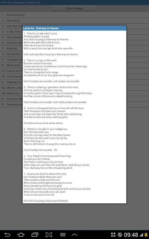 This version of Led Zeppelin Bootlegs trial Android App comes with one universal variant which will work on all the Android devices.