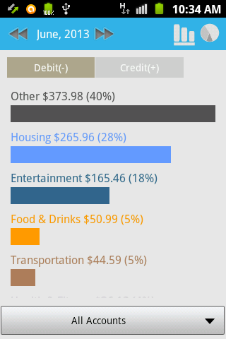 * Single tap on account to view transaction with ledger style.