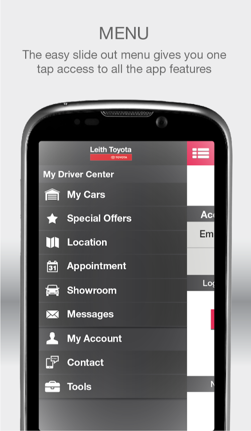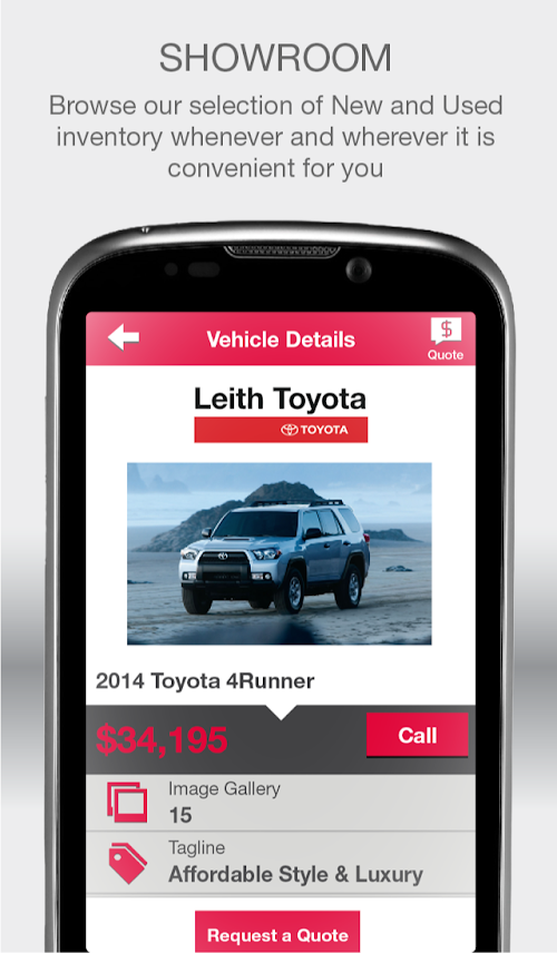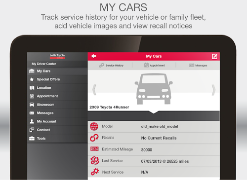 Make your vehicle ownership experience easy with the free Leith Toyota mobile app. This feature-rich app allows you to get the most out of your vehicle by helping you to maintain and organize essential car details like service history, as well as save money with mobile offers and coupons!