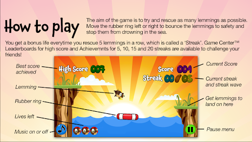 QUICK & FUN TO PLAY! Simply move the life raft to bounce the lemmings across the water.