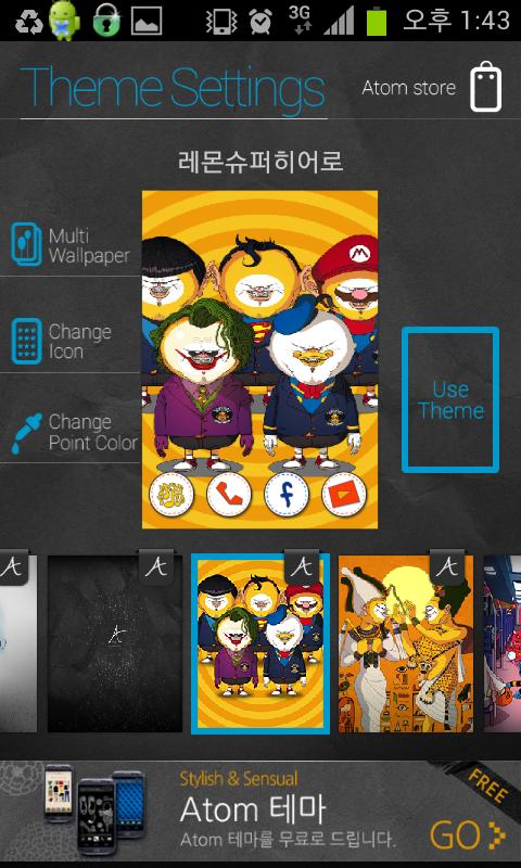 Emotionally designed themes, themes by collaboration work with famous artists, K-Pop star themes are coming soon. Please download Atom Store and experience our wonderful themes.
