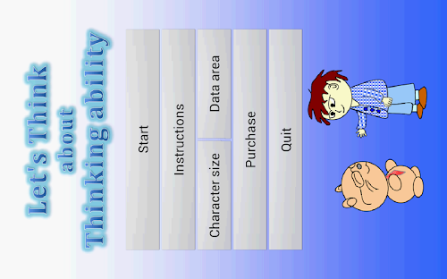 "Let's Think about Thinking Ability" is an educational application that is useful to fundamentally think about "thinking ability". This application's aim is that you concretely think what thinking is and you understand when and what and how you should think and you improve your thinking ability reasonably.