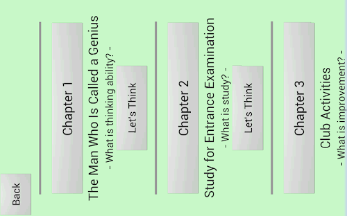 We think this application is useful for a lot of people even if only chapter 1. This application is not famous. But We think this application is useful for a lot of people. So, We want you to read chapter 1 and judge whether you buy this application or not. You may think "Things like this were probably not useful so far." or "I haven't heard about this application and I can't believe this." or "This application is not good at English.". I understand the feelings. But this application is different from things so far. I want you to try reading when you have some free time.