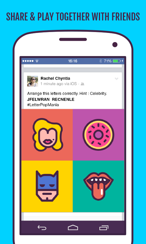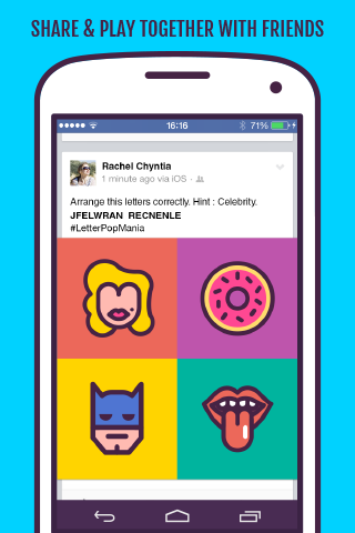 Letter Pop Mania is best played together with family & friends, as companion for fun, and relaxing time killer.
