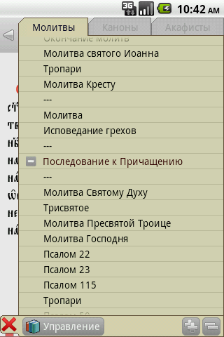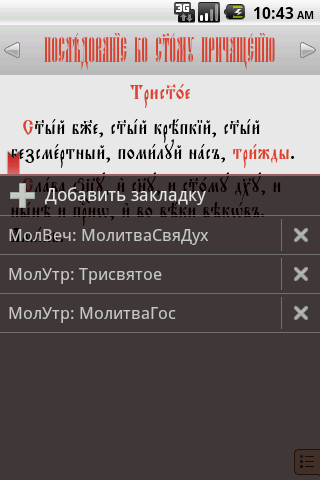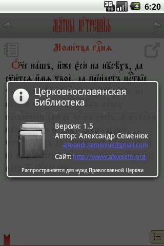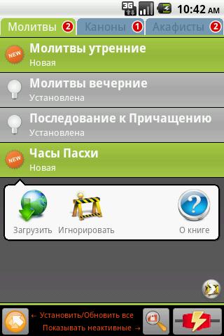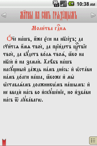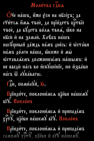Software allows to view texts of various books in Church-Slavonic language. Books are downloaded from remote server and are stored on SD card for further "offline" reading.