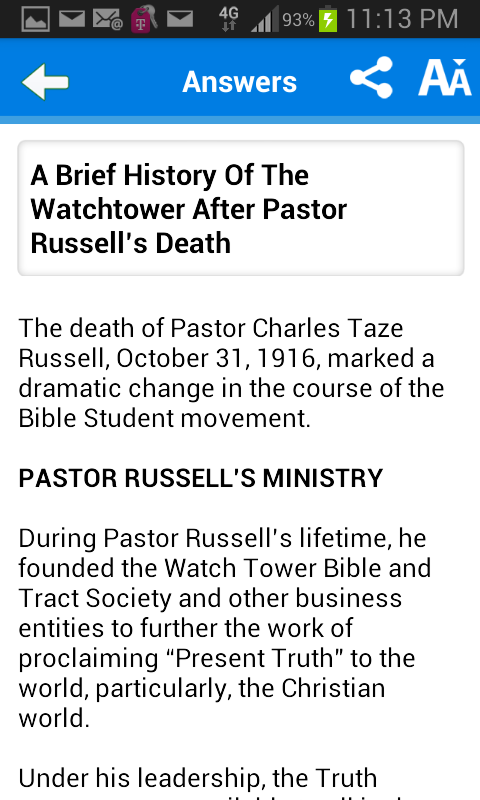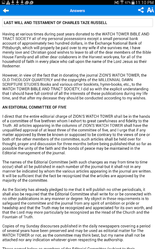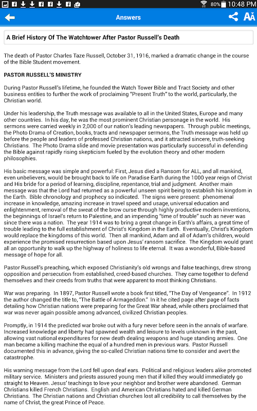 - Includes hundreds of Questions and Answers about History, Doctrine, Jehovah, Establishment of Watchtower, Rutherford, C. T Russell.