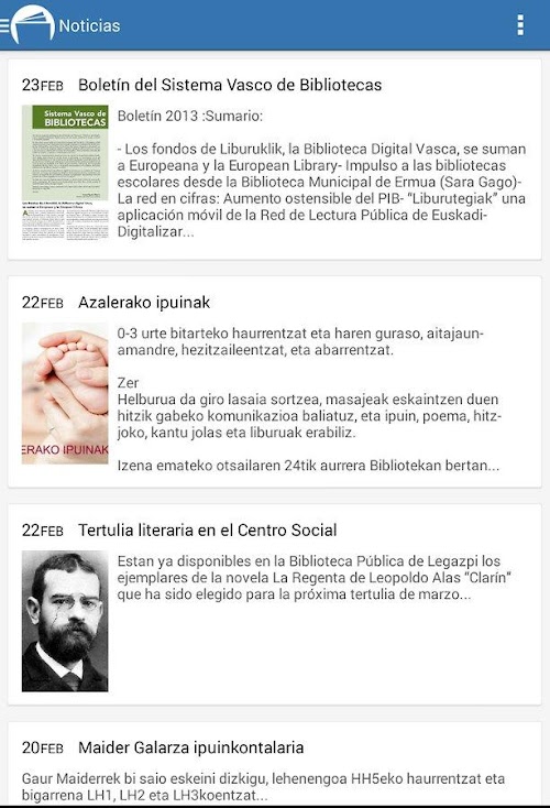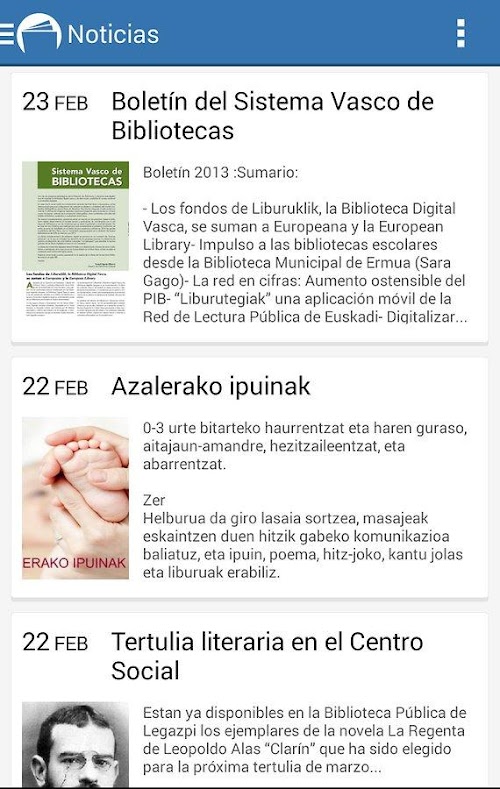 Liburutegiak App is a project of the Library Service of the Basque Government offered public and free of charge with the aim of promoting, through a new channel, access to information, activities and specific contents which are managed libraries the RLPE.