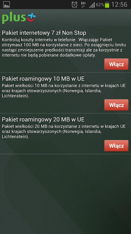 - dodatkowo, Klientom korzystającym z sieci Plus, aplikacja umożliwia w łatwy sposób dokupienie pakietów internetowych i innych usług dodatkowych opartych o transmisję danych jak np. NaviExpert.