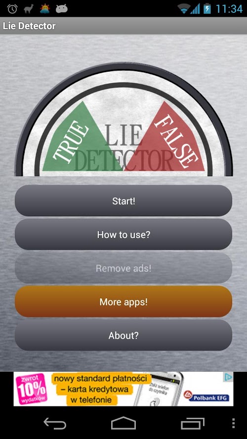 Now you can exam your family and friends if they are saying true or false! Before trying make sure you know answer to all questions! Fool them you may check if they lie - and they will never lie you again!