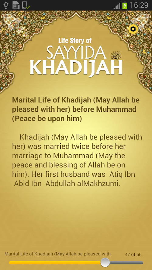 By having this app we can go through the whole life of Hazrat Khadija (R.Z). It covers and guides us in every aspect of life for women and men as well. It inspires us, motivate us .This app provides a life changing perspective for Muslim women to bring change in their life.