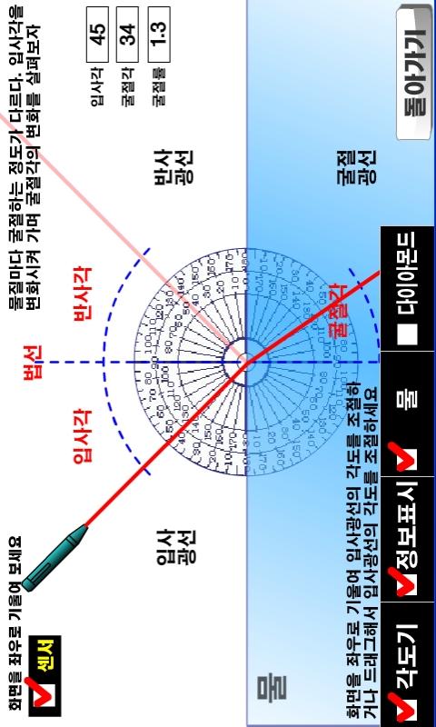 빛의 굴절실험에서 계산식에 문제가 있어 약간의 오류가 있던 것 수정
