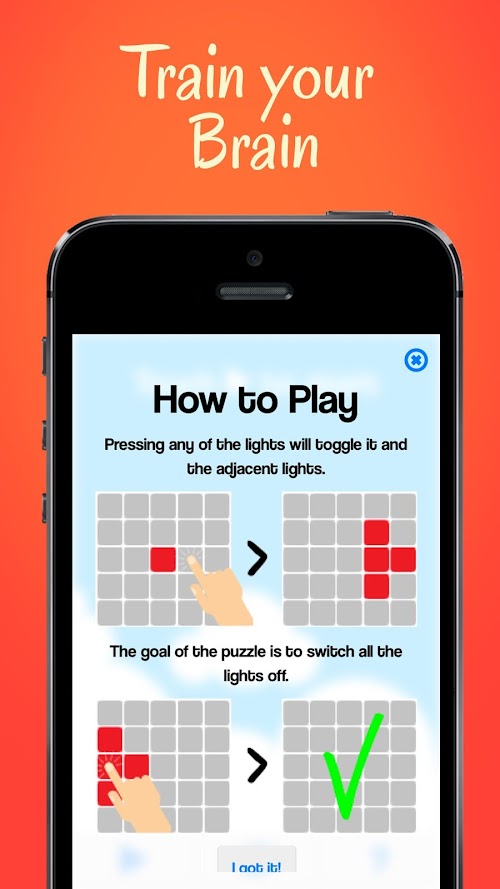 LightsOff Genius is a game where your goal is to solve the challenges, erasing all square until the table is clean, but not be fooled by its simplicity, the more you play the more complex challenges arise and you must resolve them.