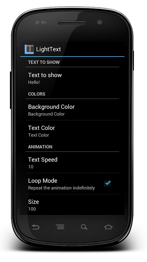 This version of LightText Android App comes with one universal variant which will work on all the Android devices.